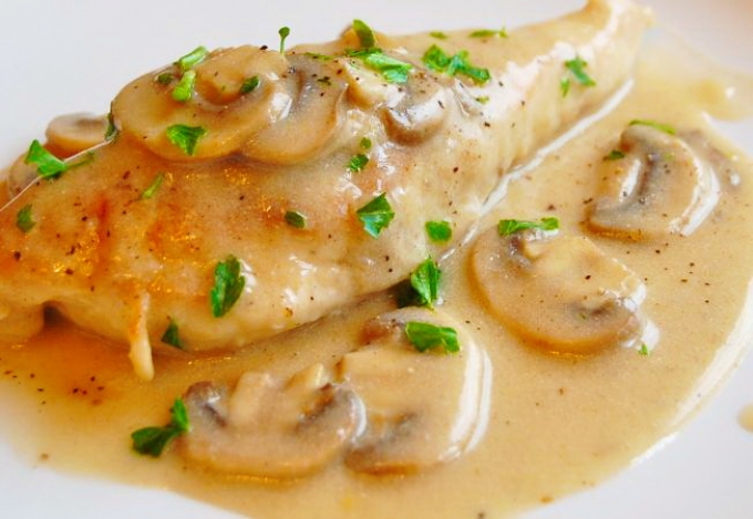 Piept de pui cu sos de ciuperci – 200g